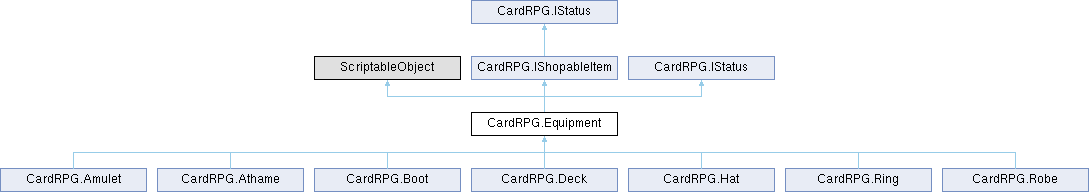 The Equipment class encapsulates properties and behaviors for items that can be equipped by players. It includes attributes such as value, level requirements, and whether the item is available for sale. Additionally, it provides detailed status information, including health, mana, attack, defense, and accuracy values for different elements. This class is designed to be used in contexts where equipment items need to be displayed, evaluated, or interacted with, such as in shops, inventory systems, or status screens.